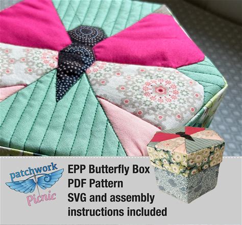 Quilted Butterfly Hexagon Box Pattern - PDF Download Svg Included. A4 And US Letter Size