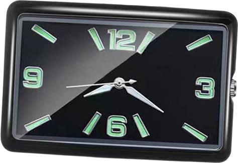 Fenteer Stick On Clock For Car Dashboard Self Adhesiion Rectangular Vehicle Clock Luminous Clock Analog For Shelf Bike Auto Boat, Black Horizontal