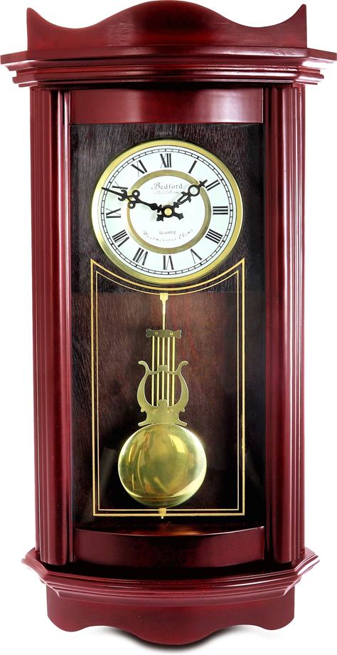 Unknown1 Decorative Wall Clock With Pendulum In Cherry Red Rectangular Wood Finish