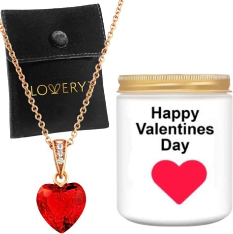 Valentine's Day Gifts For Her - Love Heart Pendant Ruby Birthstone Necklaces For Women, .925 Sterling Silver With Zirconia Stones, Valentines Candle &