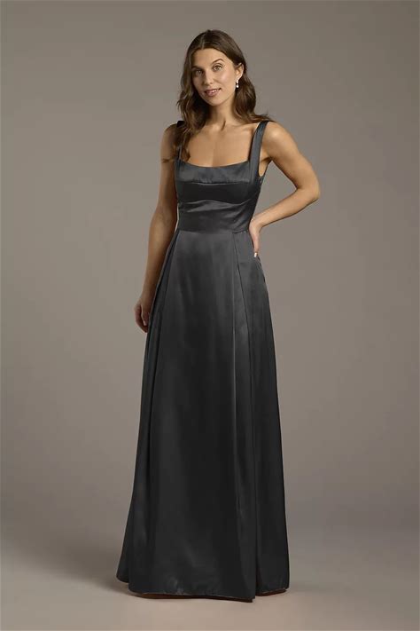 Galina Signature Women's Black Charmeuse Tank Neckline A-Line Dress In Size: 2 David's Bridal