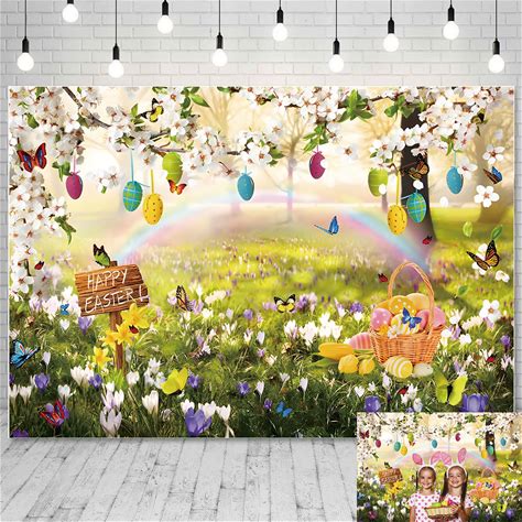 Spring Easter Backdrop 7x5ft Easter Eggs Flower Field Forest Photo Background For Photography Party Decorations Studio Photo Booth Props