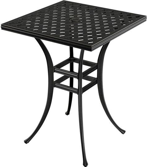 29 in. W X 29 in. D Black Cast Aluminum Outdoor Patio Diamond Grid Tabletop Square Dining Table With Umbrella Hole
